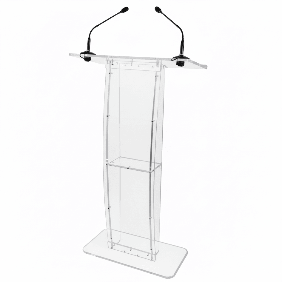Location de pupitre plexiglas transparent au design moderne et élégant pour vos événements. Idéal pour les conférences, les séminaires, les présentations ou les cérémonies de mariage. Sa structure en acrylique offre une présence discrète tout en mettant l’orateur en valeur.